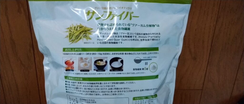 サンファイバーのカロリーは1gあたりたった2kcalです。「余分に炭水化物を摂るの嫌だな…」などと考える必要はありません。私のように1回6gの使用でも12kcalを摂取するだけにとどまります。心配ないですよ。