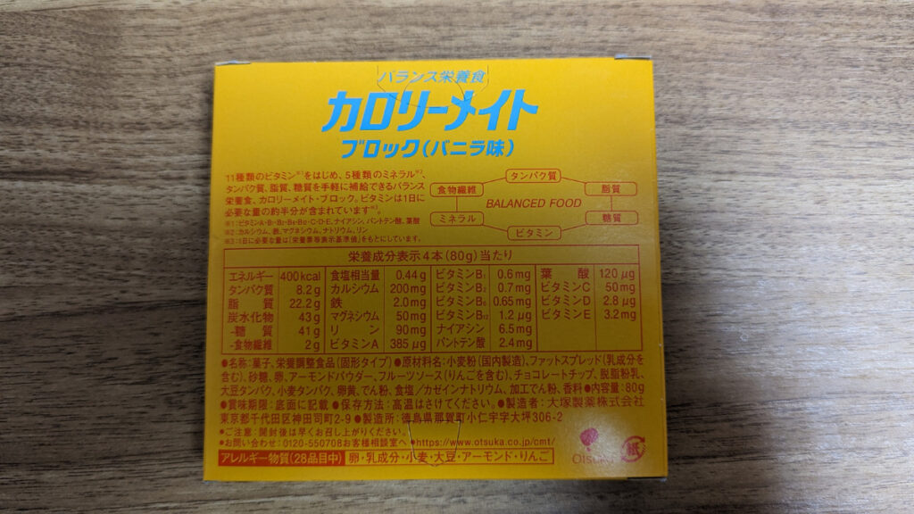 カロリーメイトバニラの栄養
